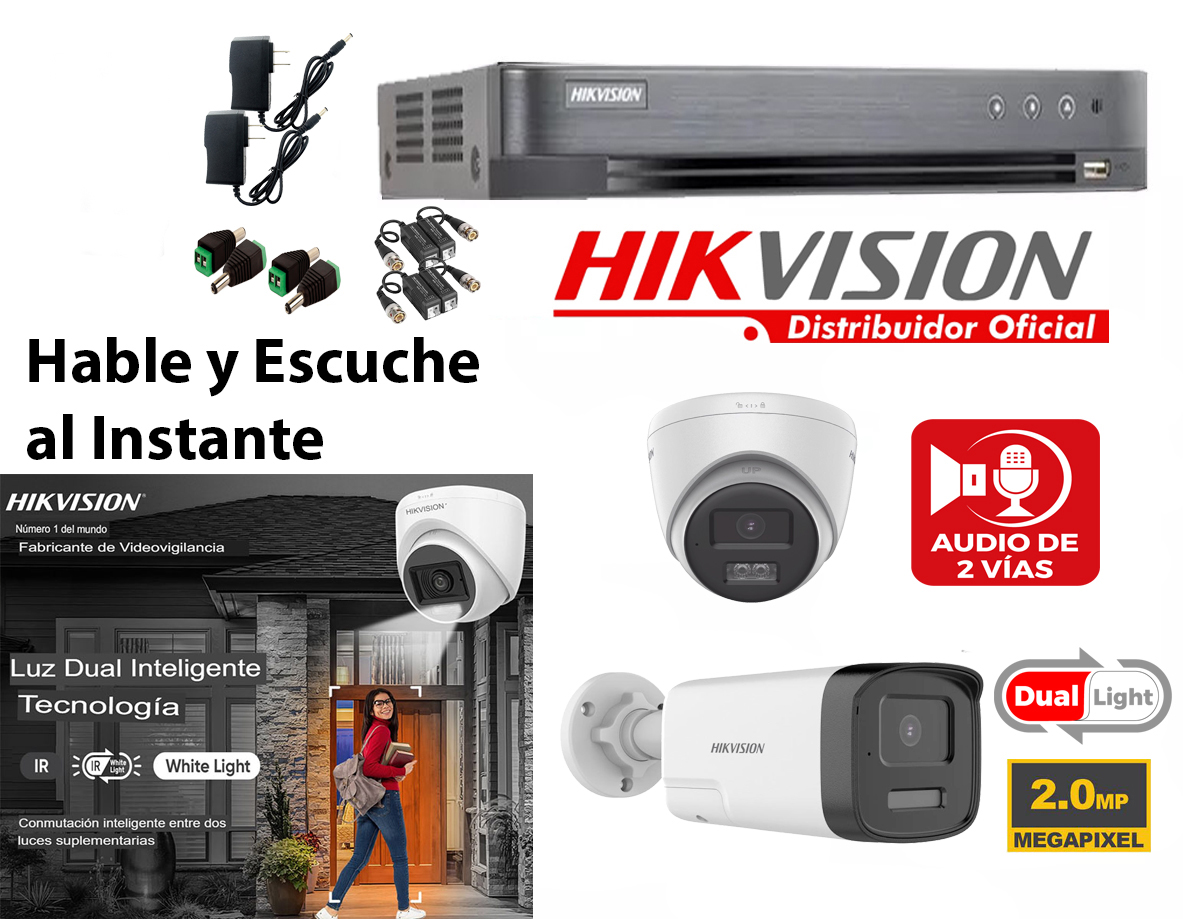 Kit de 2 Cámaras Full hd con Audio /Parlante / ColorVu Hikvision 7204q_kit2_audiobi